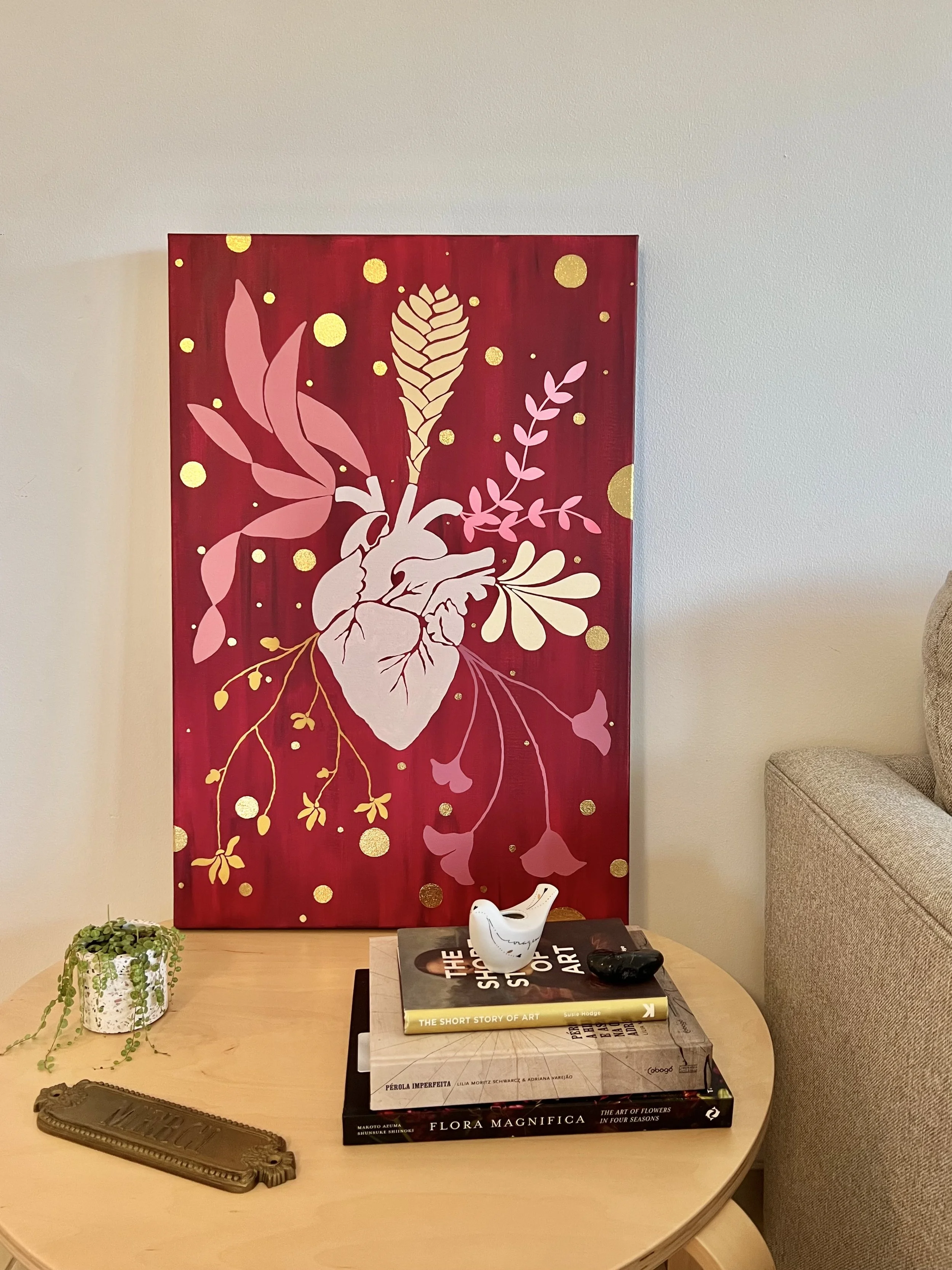 SECRETS OF THE HEART 01: acrylic and gold leaf on canvas - 30x20x1.5 inch (2022)
